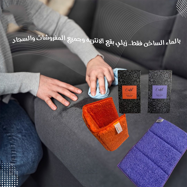 الفوطة الثلاثية من ايكواى لتنظيف جميع أنواع المفروشات وازاله البقع بدون منظفات المفروشات الكيميائية تحافظ علي نسيج وألوان الاقمشه اقوي نسيج مايكرفايبر اصلي تعمل بالماء الساخن فقط